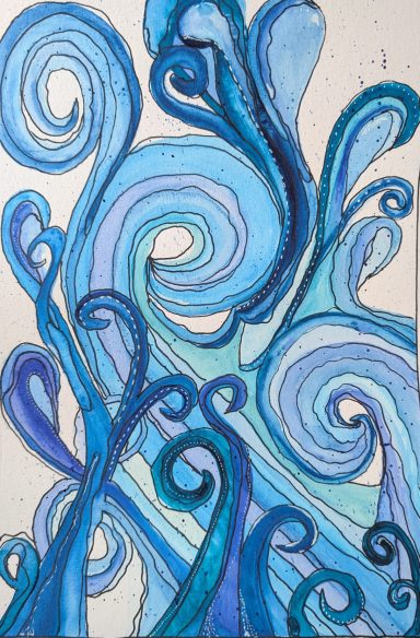 Jeden Montag bringe ich ein Bild oder eine Idee mit. Ich male vor und die Teilnehmenden malen nach. Und, obwohl wir alle das selbe Motiv malen, sieht jedes Bild individuell aus.