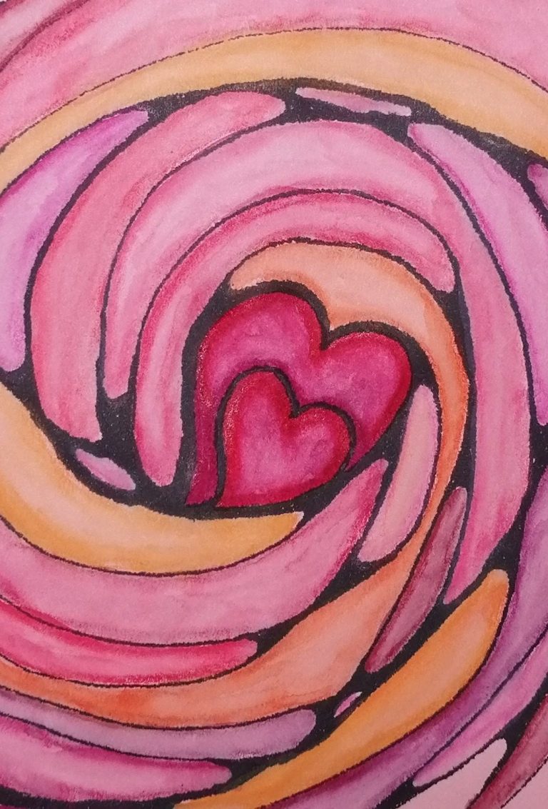 Mit Aquarellfarbe malst mit viel Herz eine Karte oder ein Bild zum Valentinsag.