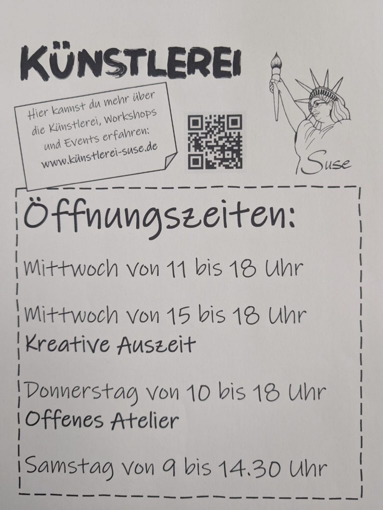 Die Künstlerei hat jetzt mittwochs und samstags auch schon vormittags geöffnet. Eine zusätzliche Möglichkeit die Künstlerei einmal zu besuchen.